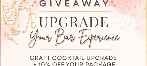 Giveaway! Visit our Facebook or Instagram and enter to win a complimentary Craft Cocktail Upgrade PLUS 10% off your bar package! Ends 4/14 at 11:59pm CST.